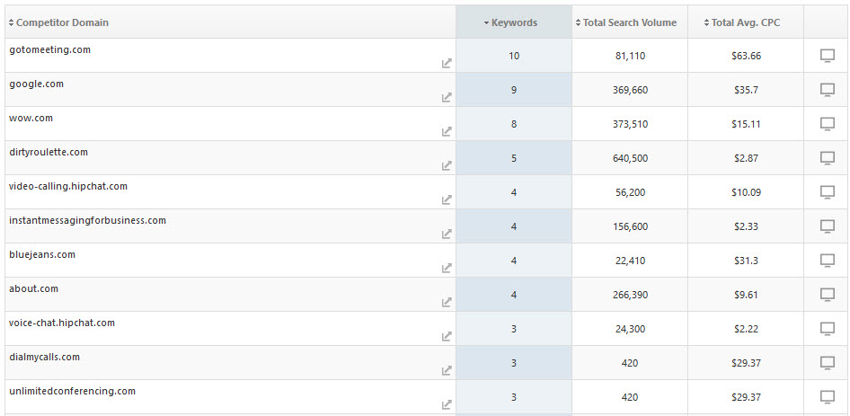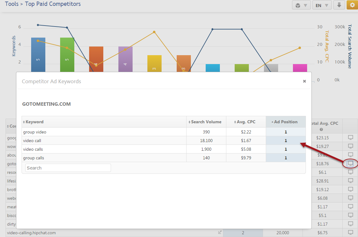 The Top Paid Competitors report provides insight into your top competitors ad ranking, exposing which keywords they are focusing their advertising budget on.