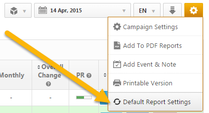 If you make changes to a report's options and decide you want to revert back to a previously saved setting, you can load Rank Ranger Defaults or previously saved Campaign, Profile, Account, or White Label Portal Defaults. Refer to