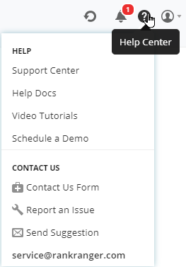 Select the desired report language. At this time you can view your SEO rank tracking reports in English, Dutch, French, German, Hebrew, Italian, Portuguese, Russian and Spanish. Through this menu, you also have the option to switch to