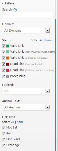 • Search a Link ID #, Link From or Link To URL, or Anchor Text (optional)