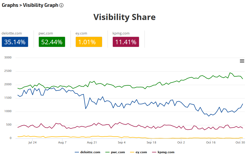 Visibility Score is calculated per keyword for keywords that are ranking in the top 30 search engine results for each search engine tracked in the campaign.