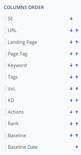 • Baseline Date: displays a column with the date that RangerBot first recorded rank for the keyword.