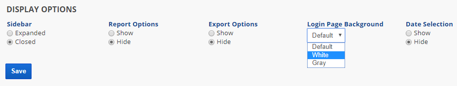 • Export Options: This option allows you to Show or Hide the Export options (e.g., if you don't want the viewer to be able to download reports, then set this option to Hide)