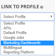 • Select the Profile* that contains the campaigns you want to view in a single sign-on Client Dashboard.  Only select this for the campaign you will launch the Client Dashboard from.