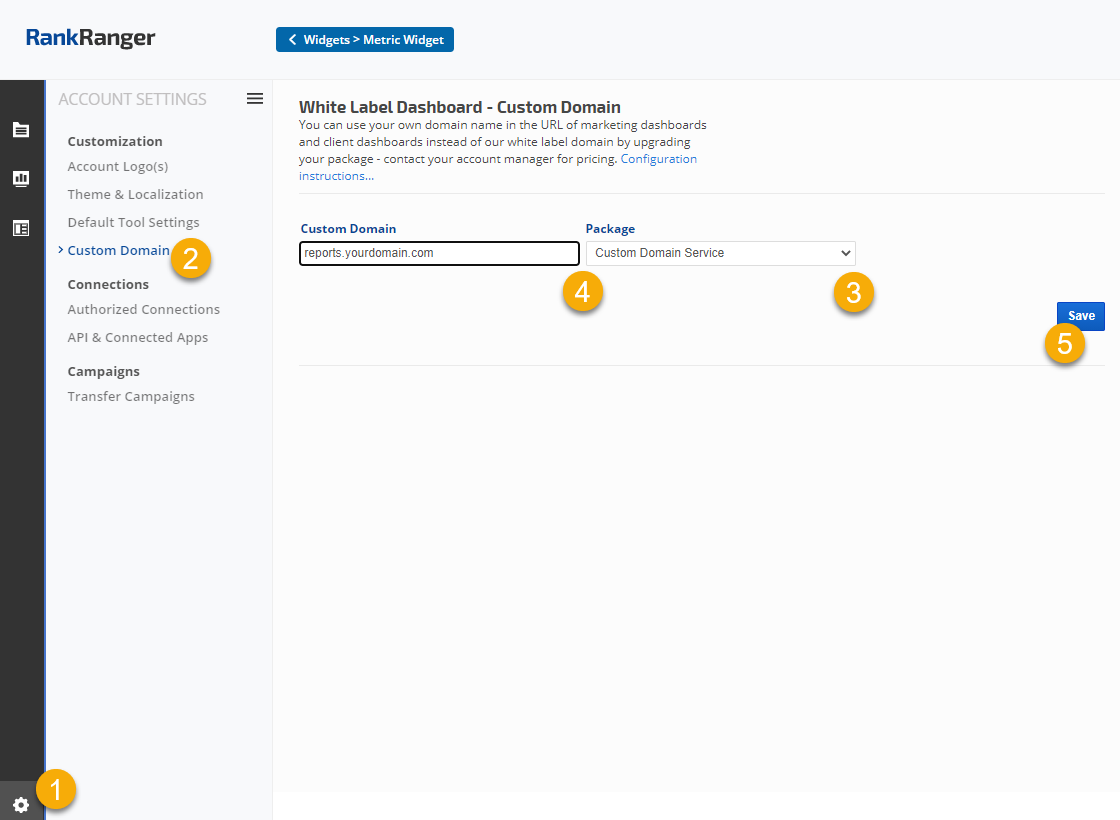 Note: We support multiple custom domains where the main one is set up via Rank Ranger User Interface and the others are done by a separate request. For every custom domain, a separate SSL must be purchased and set up. For more details contact your sales representative or write to service@rankranger.com