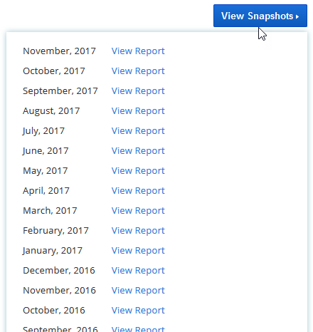 If in the campaign's Search Console settings you have selected the option that enables RangerBot to archive monthly snapshots of your Search Console data, then in the top right corner of this report you will see the View Snapshots option that allows you to select and view data from previous months. That Historical Data Storage option causes the following Search Console data to be stored based on calendar months without filters: