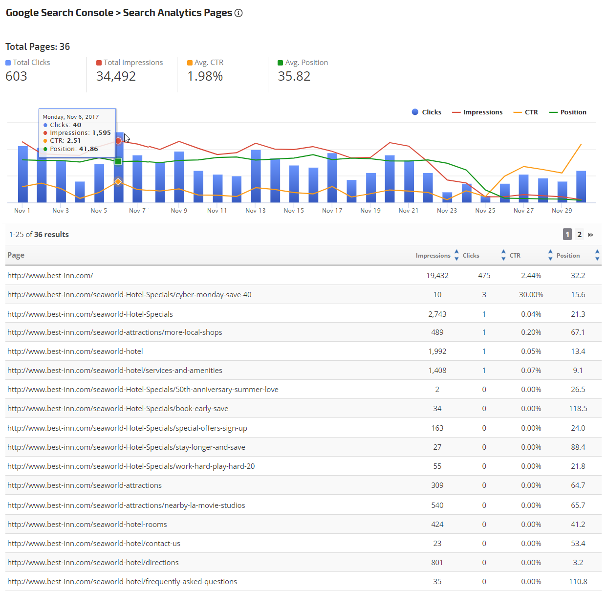 Authorizing a Google Search Console account connection with Rank Ranger integrates referral traffic and search query data directly into the following reports and graphs that can be viewed and added to white label marketing dashboards, client dashboards, and automated PDF Reports: