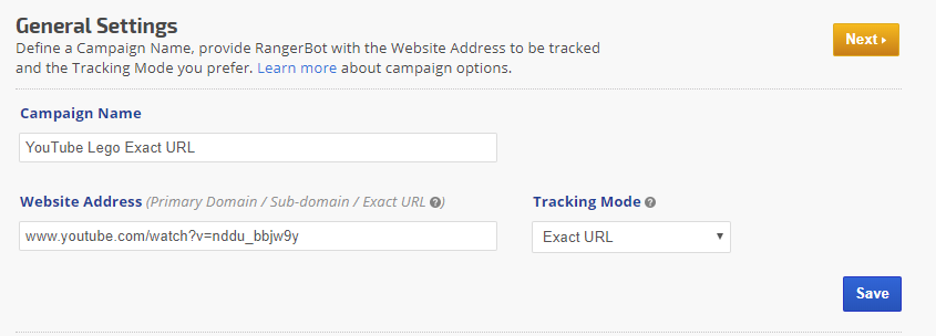 Note: with the Target URL method, you may also track YouTube video rank in Google organic search